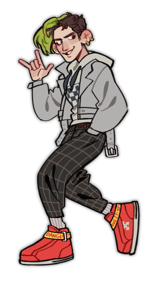 "Welcome to the city, kid!"Parker is a Hellion who uses tactical planning and gymnastics to navigate a post-apocalyptic and dangerous city. At a glance, he acts less intelligent than he really is, and is extremely friendly towards almost anyone.Despite never showcasing his mutations, he's one of the most capable Hellions when travelling through the city. Able to think on his feet, he can turn a bad situation around, even if it's caused by his own clumsiness.