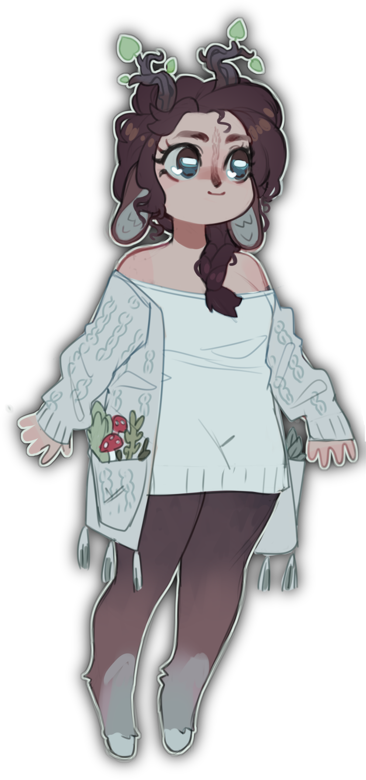 🎍 - knox can spawn small plants that copy the motif of any sexually intimate partner. this includes the ability to grow flesh, bones, and material from the ground.✨ - knox's horns have magical properties and are considered enchanted. they will seasonally fall off and then grow back.🏰 - knox's location will alter her appearance over time, with different horn designs that have different magical properties.🍖 - she is a omnivorous plant which includes meat. much to one's horror, she will partake consumption of the flesh and organs of human beings, raw or otherwise.🌱 - knox can be killed, but is hard to destroy. any plant matter left of her existence will grow to re-spawn her. she can be considered a pest.