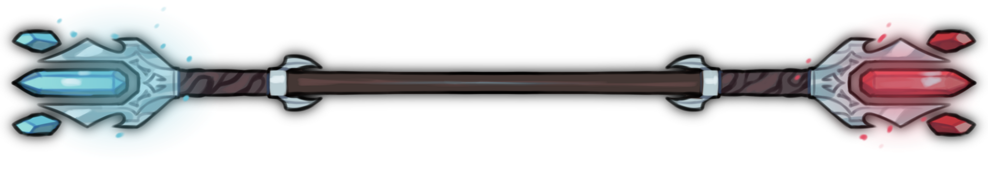 Savllomon owns a double-headed staff to cleanly swap between healing and damage. He utilizes this tool similarly to a Bo Staff, swapping ends to use its corresponding magic.