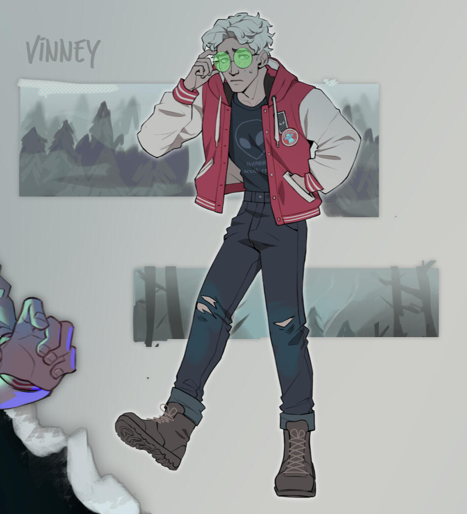 Vincent "Vinney" Campbell is Creeksvale’s resident paranormal investigator (self-proclaimed). A nervous wreck with a mind that moves faster than his mouth, Vinney is obsessed with crypto-science, convinced that something bigger is lurking beneath the town’s eerie perfection. Whether it’s cryptids, electromagnetic anomalies, or hidden messages from another dimension, he’s dead set on uncovering the truth, even if it means dragging others straight into the mystery with him.
