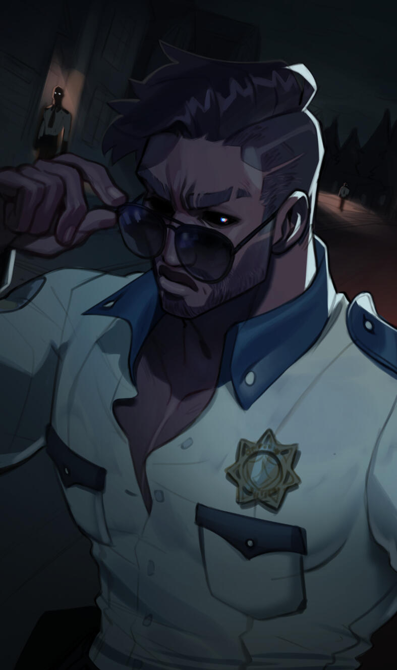 Officer Jason, Deputy Sheriff of the PDOC.He enjoys the close-knit town and its laid-back crime, often stopping to chat with the youth or hit the gas for starbucks. He doesn't mean to be a stereotype, but he enjoys it.Like the others, he is mimicking a human appearance, and those who catch on to the façade are in immediate danger.Jason prefers don't-ask don't-tell, and prefers to keep his hands clean. He likes to stay at home and BBQ when not on the job. His co-workers take things more seriously however - they aren't so laid-back.